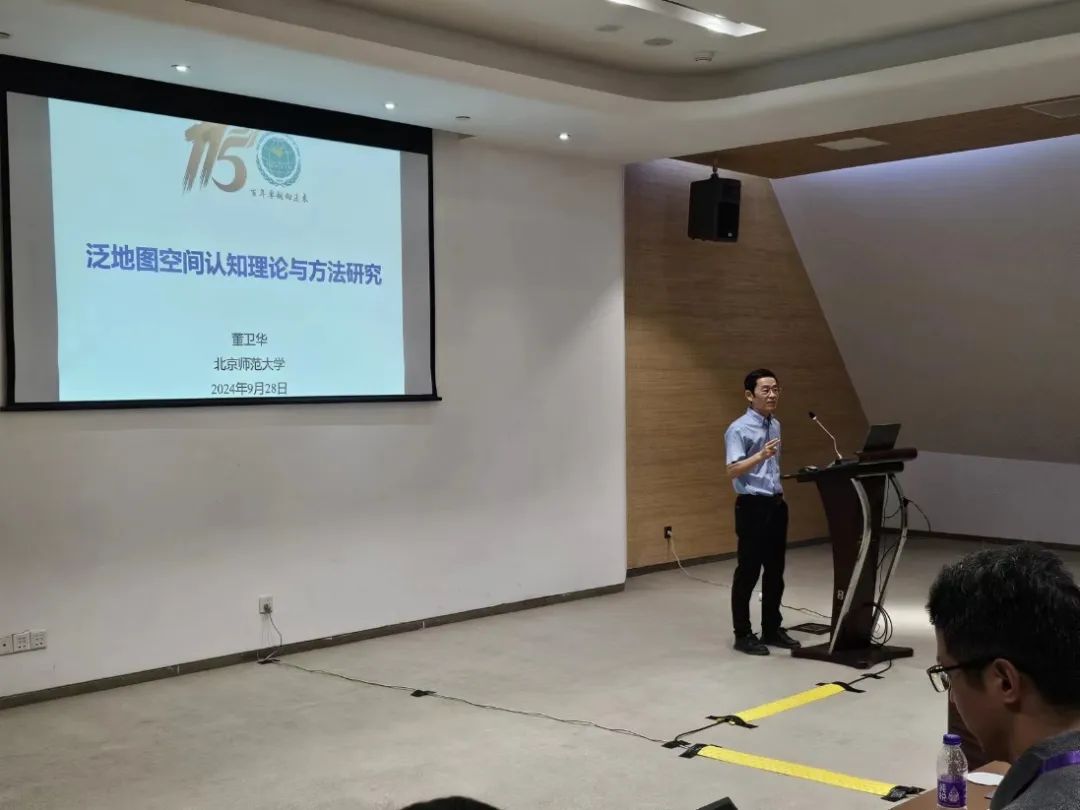 在特邀报告环节,董卫华教授以“泛地图空间认知理论与方法研究”为题,首先指出人类社会已进入地理空间、社会人文空间和信息空间相融合的三元空间。在新技术和新需求的驱动下, 地图空间认知的三要素即认知主体、认知客体和表达方式呈现出泛化特征, 进而详细阐述了国内外地图空间认知研究进展及其存在的局限性,提出构建实验方法体系-认知机制-表达模型的泛地图空间认知研究框架。该框架将传统的地图空间认知拓展到了泛地图空间认知, 推动创建适应泛地图学发展趋势的空间认知理论和方法。