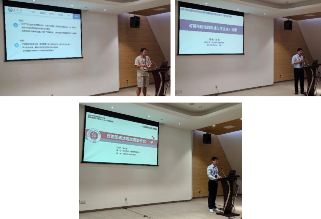 本分会场专题报告分为两个阶段进行。第一阶段由吴明光教授主持,武汉大学应申教授与兰州交通大学闫浩文教授共同指导的王卓博士、武汉大学杨敏教授、深圳大学陈业滨博士依此作了题为“自媒体时代的微地图审核判别”、“可解释的地图数据尺度变换AI模型”、“泛地图表达连续图谱研究”的学术报告。以上报告有利于深化泛地图研究边界、应用模式、生成方式、用户类型的讨论:地图的形式将更接地气,泛地图的用户将由人拓展到机器(人),而人工智能将为泛地图的生成提供新的技术途径。